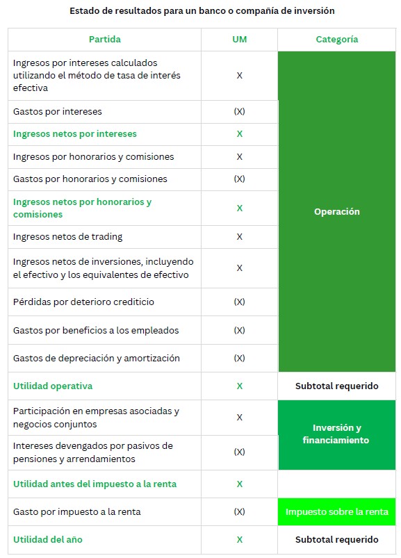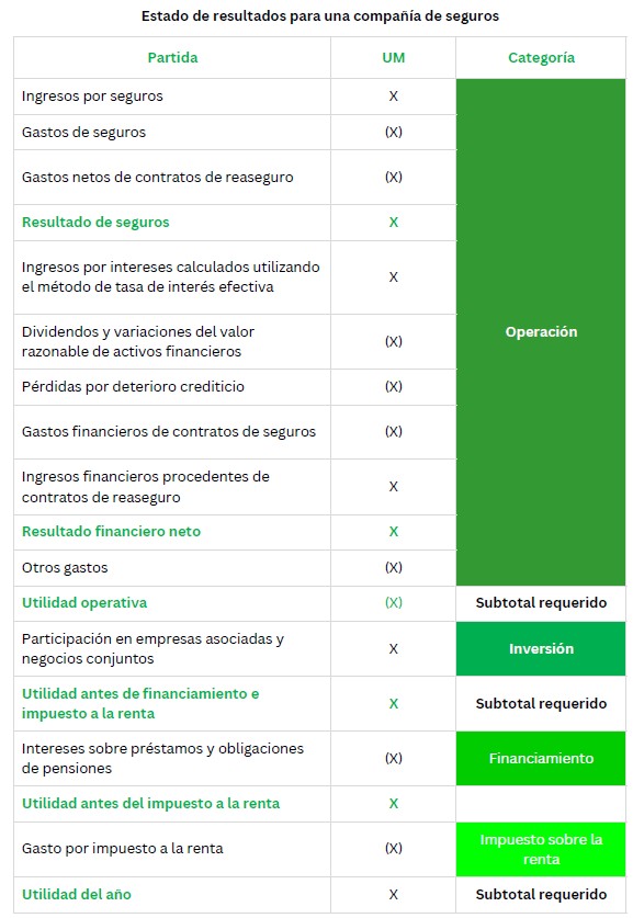 Las compañías deberán clasificar los ingresos y los gastos de acuerdo con las siguientes categorías que define la
